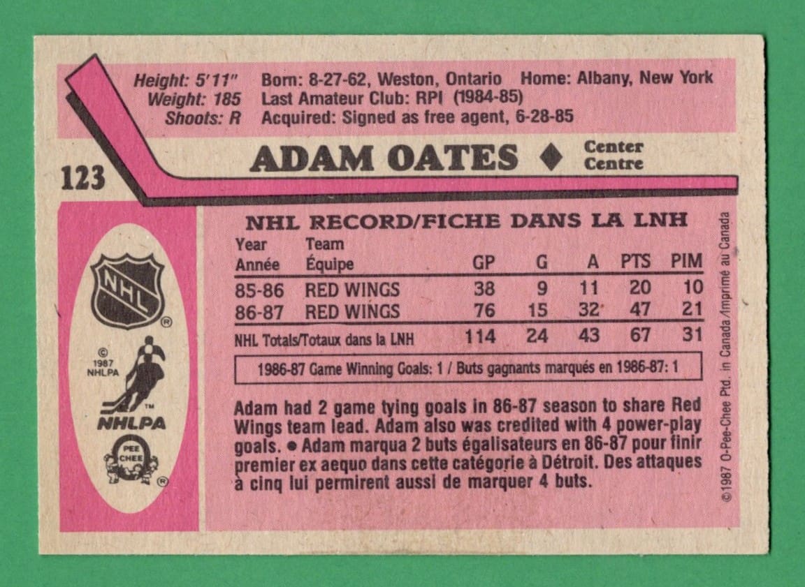 Adam Oates 1987-88 O-Pee-Chee Rookie Card #123 (B)