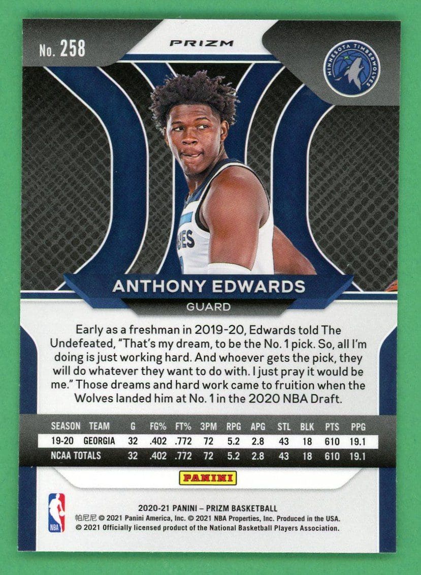 Anthony Edwards 2020-21 Panini Prizm Pink Ice Rookie Card #258