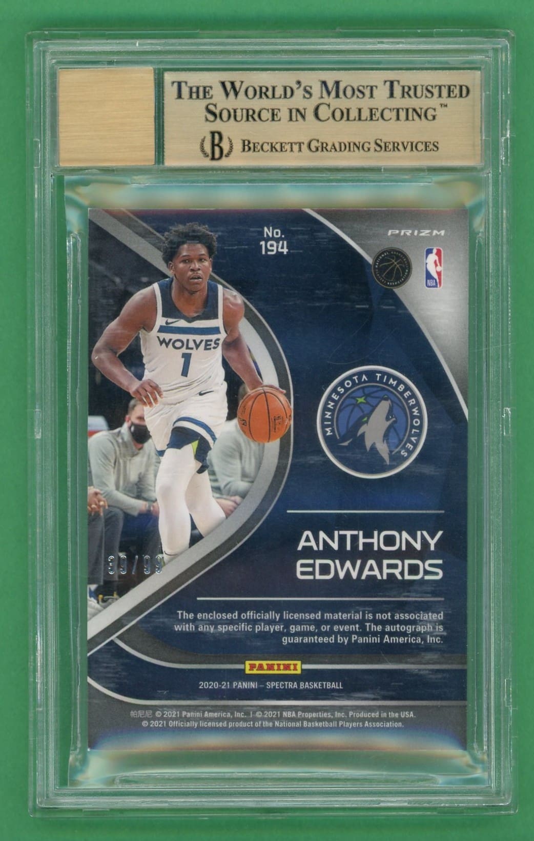 Anthony Edwards 2020-21 Panini Spectra Rookie Jersey/Auto /99 #194 BGS 9.5
