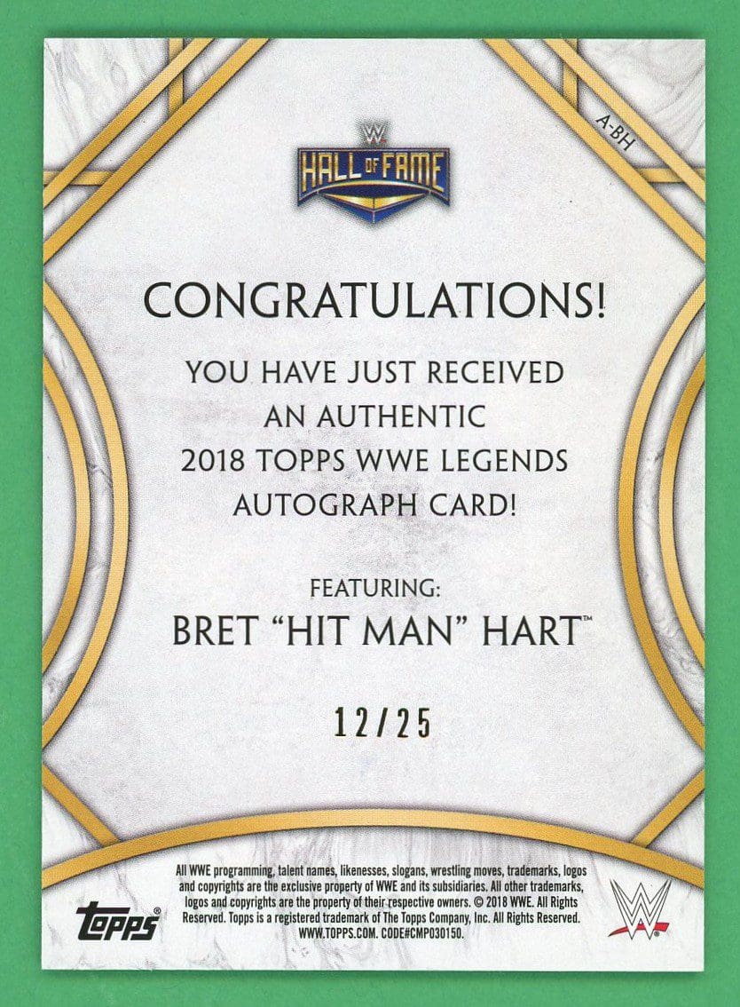 Bret ‘Hit Man’ Hart 2018 Topps WWE Hall Of Fame Blue Auto /25 #A-BH