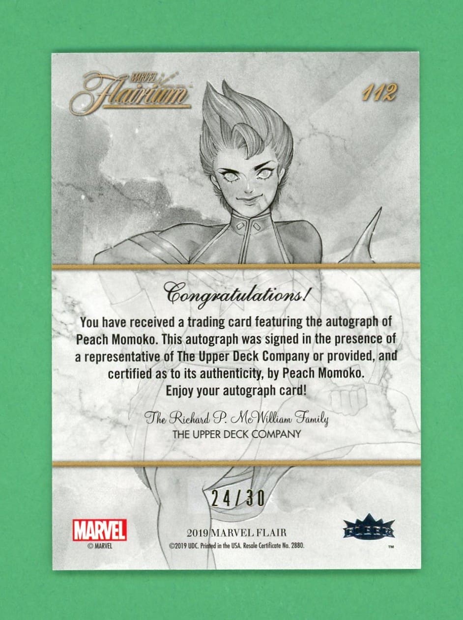 Captain Marvel 2019 Marvel Flairiym Peach Momoko Autographed Card /30 #112