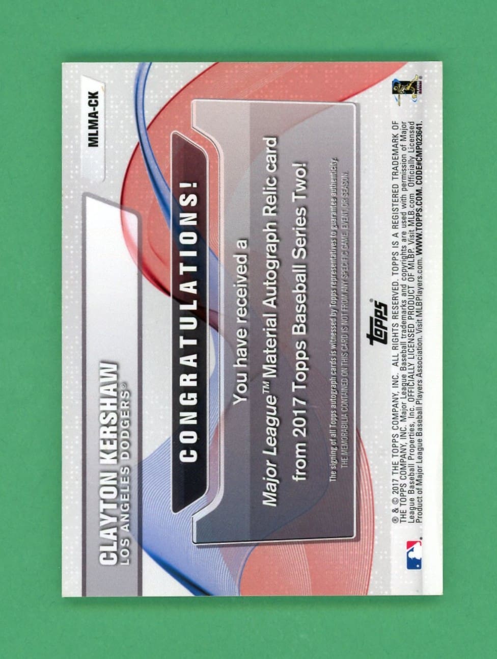 Clayton Kershaw 2017 Topps Series 2 Autographed Material Relic /15 #MLMA-CK