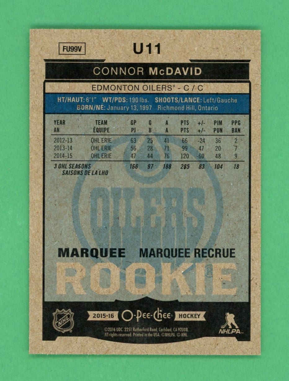 Connor Mcdavid 2015-16 O-Pee-Chee Marquee Rookie Update #U11