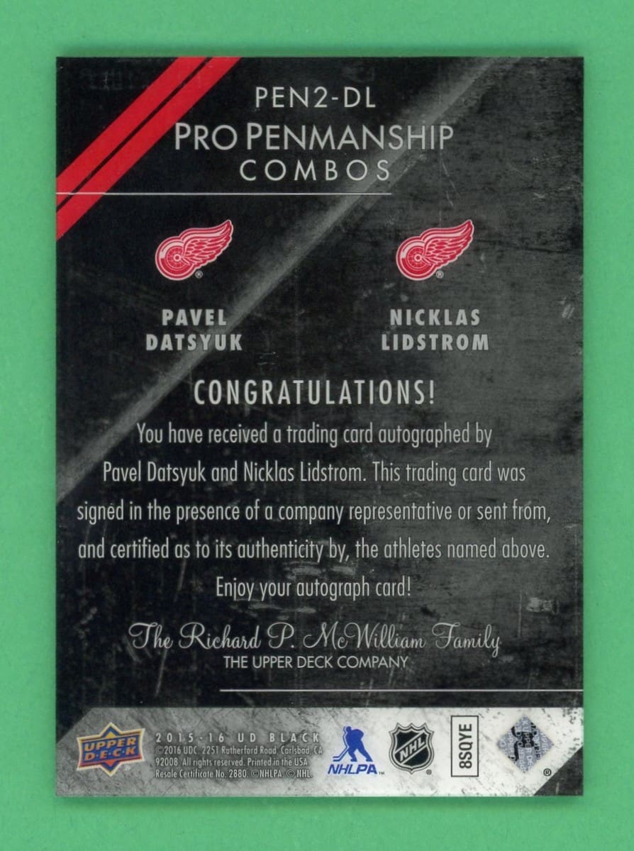 Datsyuk, Lidstrom 2015-16 Upper Deck Black Pro Penmanship Combos /15 #PEN2-DL