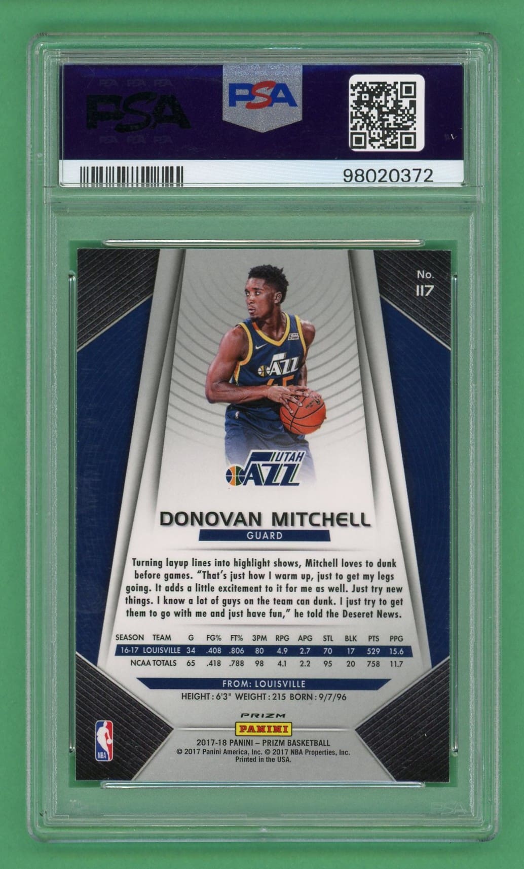 Donovan Mitchell 2017-18 Panini Prizm Silver Rookie Card #117 PSA 9