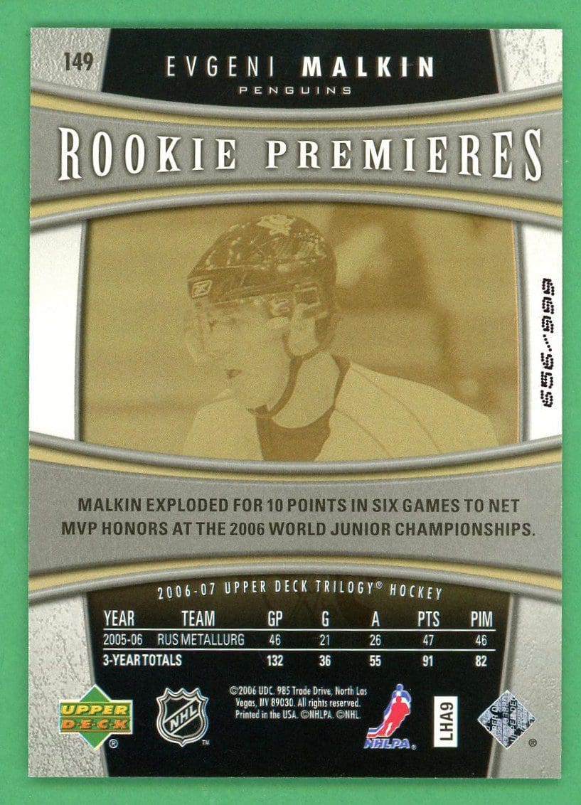 Evgeni Malkin 2006-07 Upper Deck Trilogy Rookie Premiers /999 #149