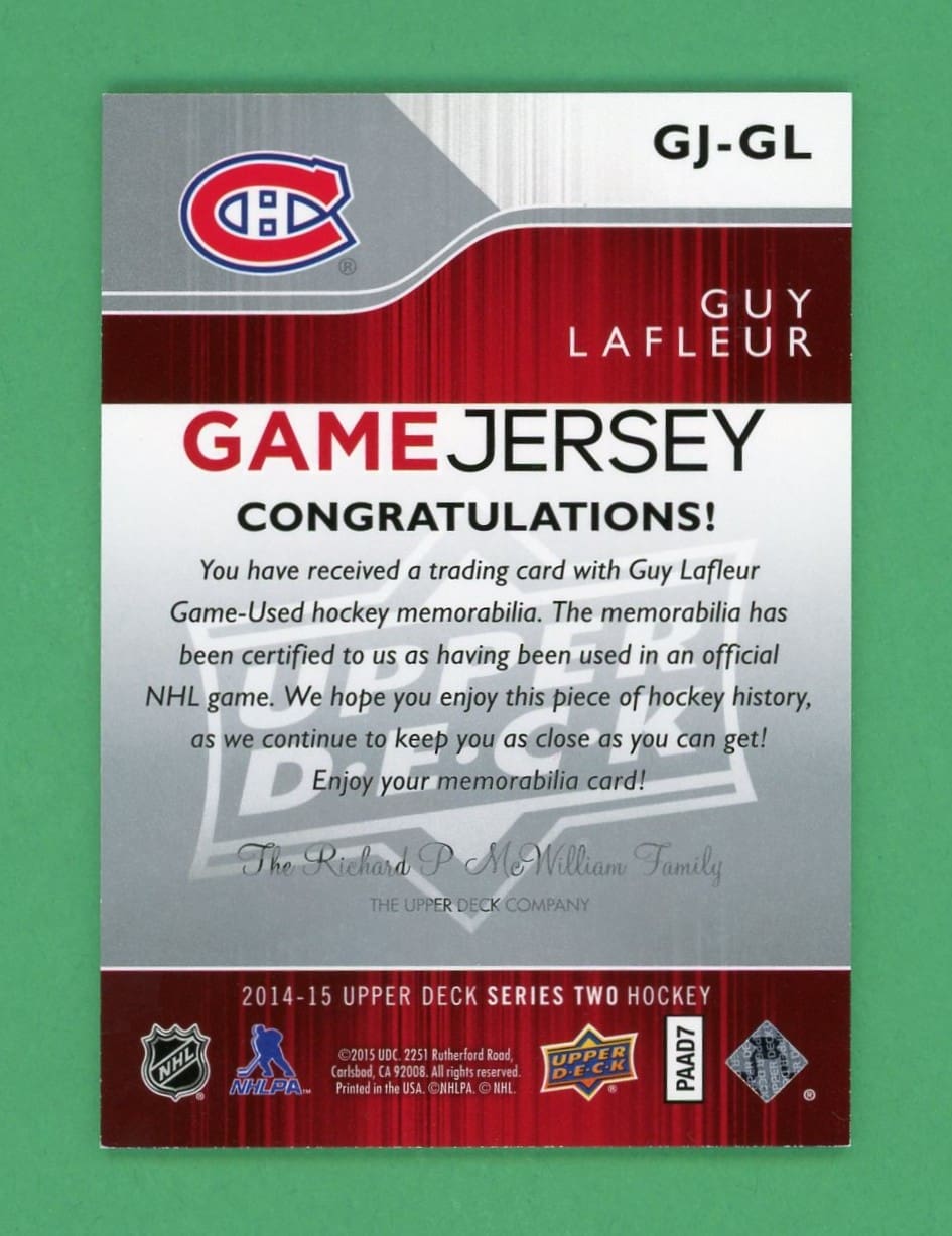Guy Lafleur 2014-15 Upper Deck Series 2 UD Game Jersey #GJ-GL Rare 2 Color