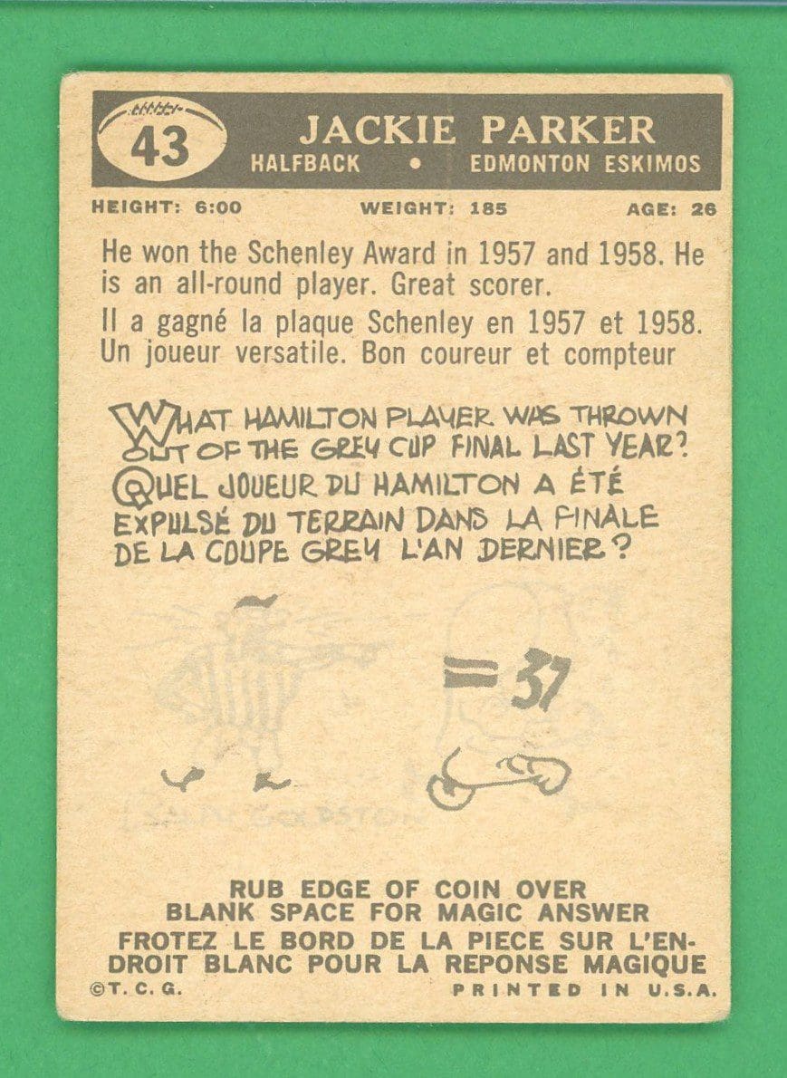 Jackie Parker 1959 Topps CFL Edmonton Eskimos #43