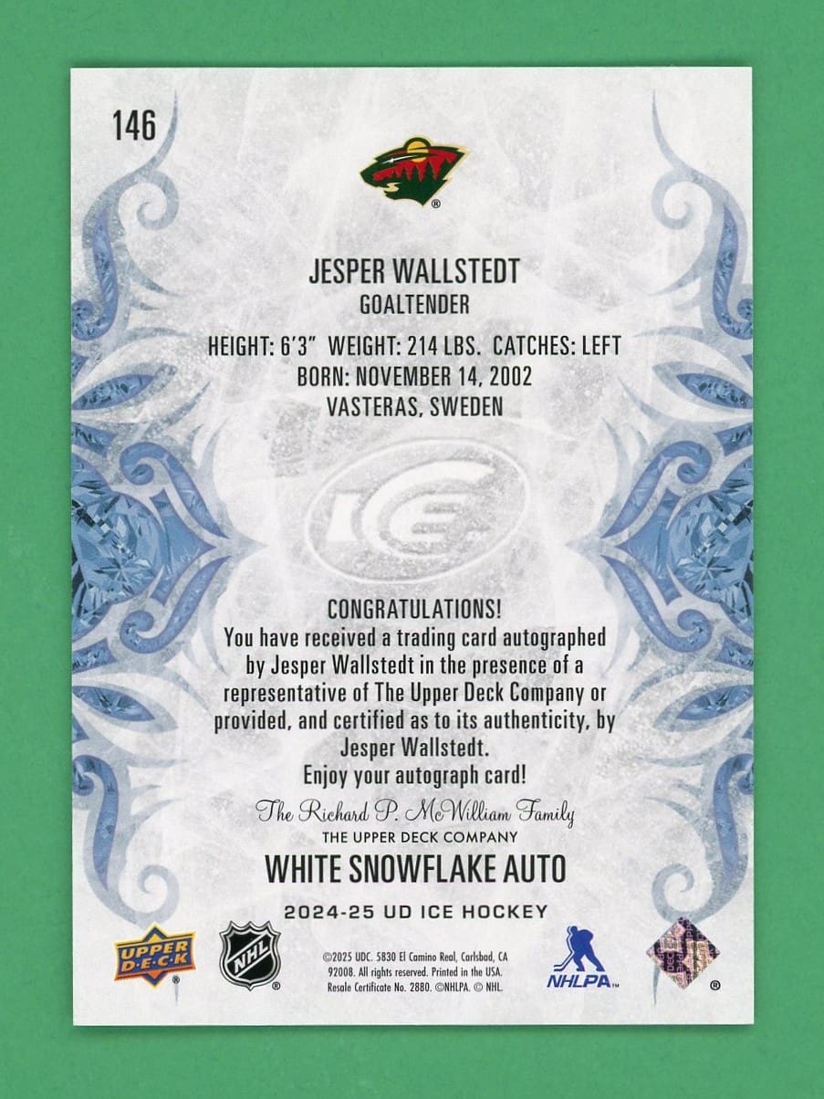 Jesper Wallstedt 2024-25 Upper Deck Ice White Snowflake Rookie Auto #146