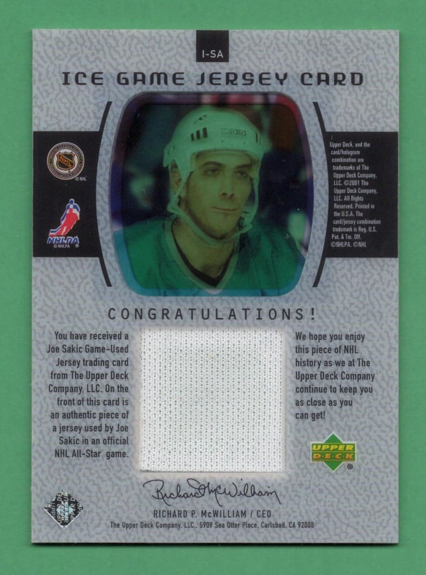 Joe Sakic 2000-01 Upper Deck ICE Game All-Star Jersey Card #I-SA