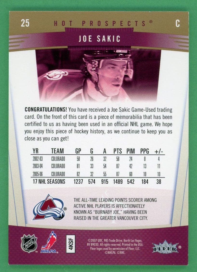 Joe Sakic 2006-07 Fleer Hot Prospects Gold Patch /10 #25