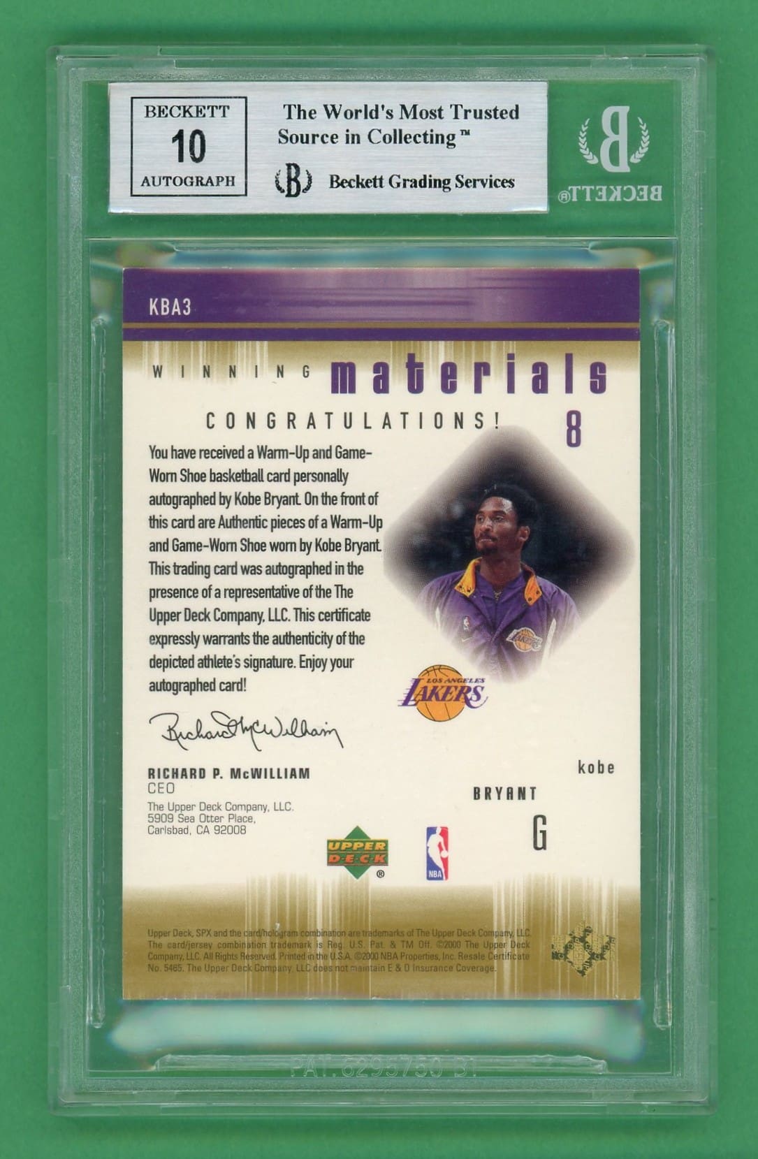 Kobe Bryant 00-01 Upper Deck SPX Winning Materials Auto/Dual Patch #KBA3 BGS 8.5