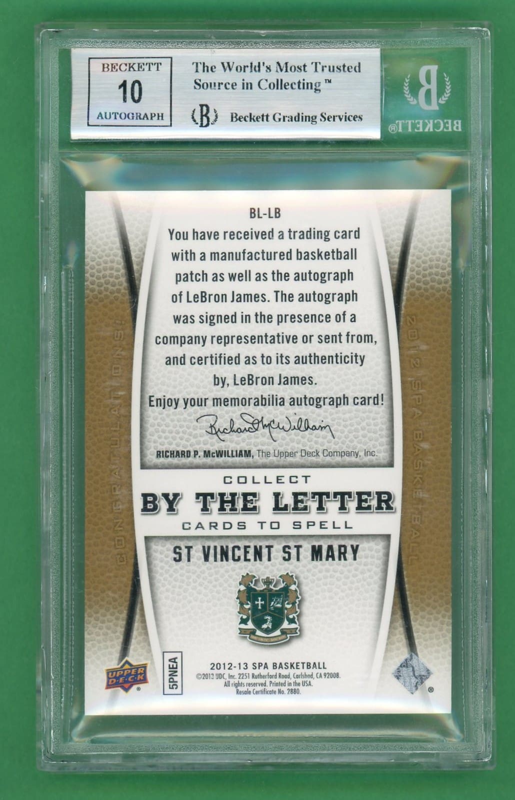 Lebron James 2012-13 Upper Deck SP Authentic By The Letter Signatures /5 BGS 9