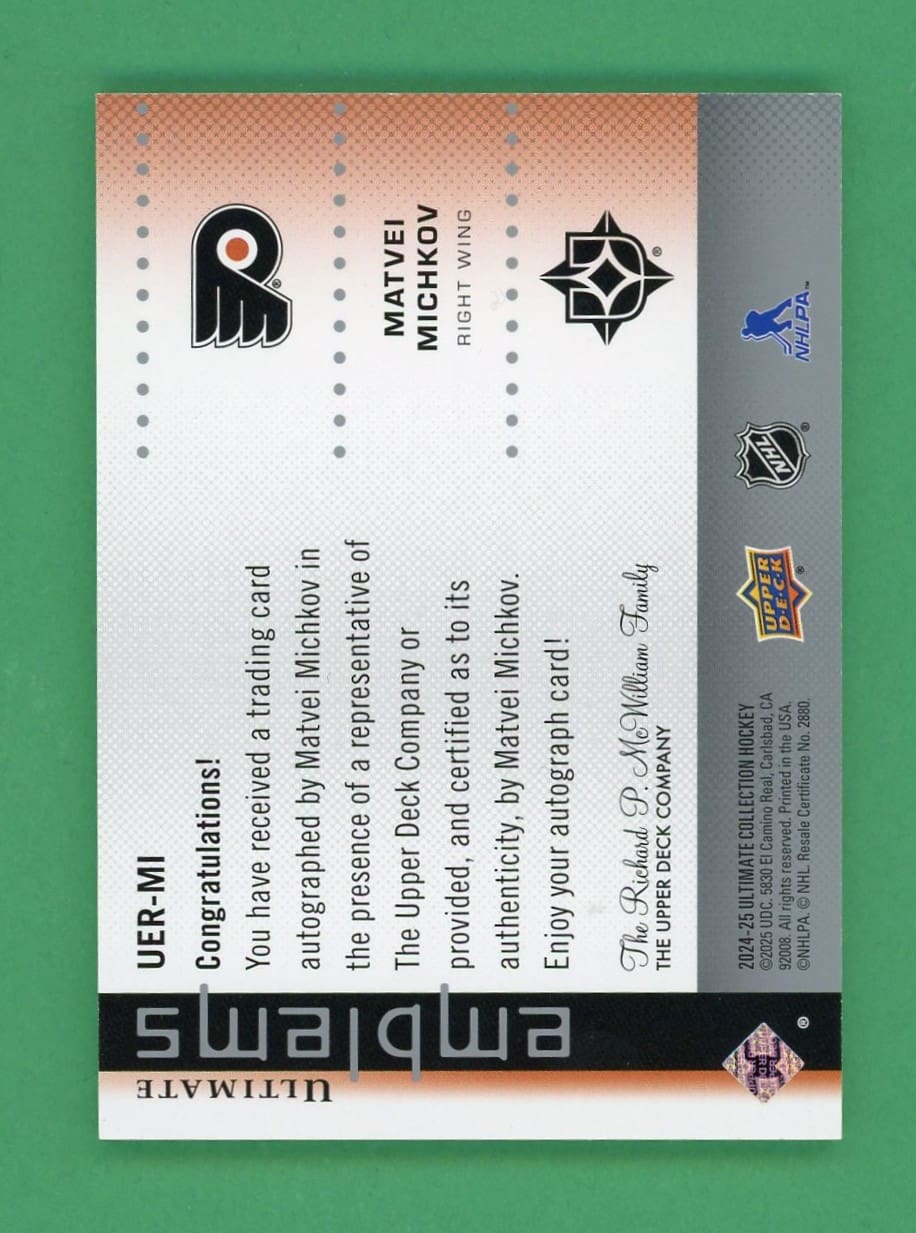 Matvei Michkov 2024-25 Upper Deck Ultimate Emblems Rookie Auto #UER-MI