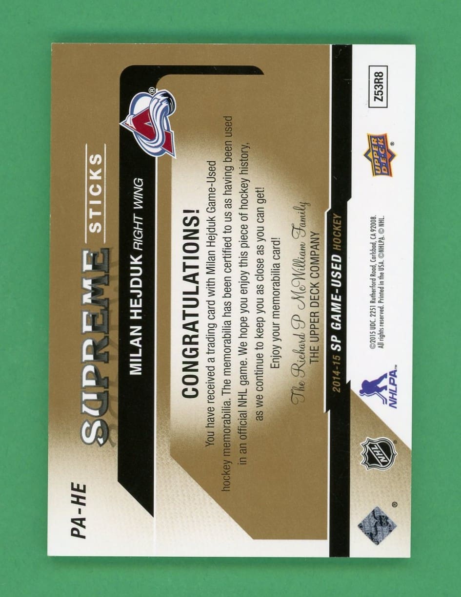 Milan Hejduk 2014-15 Upper Deck SPGU Supreme Sticks /12 #PA-HE