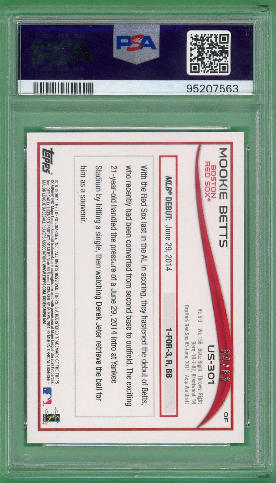 Mookie Betts 2014 Topps Update Series Black Rookie Card /63 #US-301 PSA 8