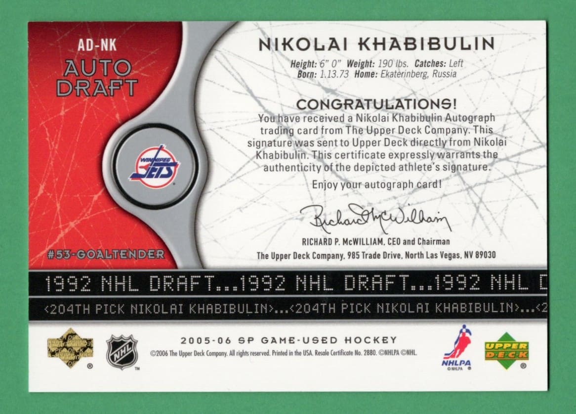 Nikolai Khabibulin 2005-06 Upper Deck SPGU Auto Draft /204 #AD-NK