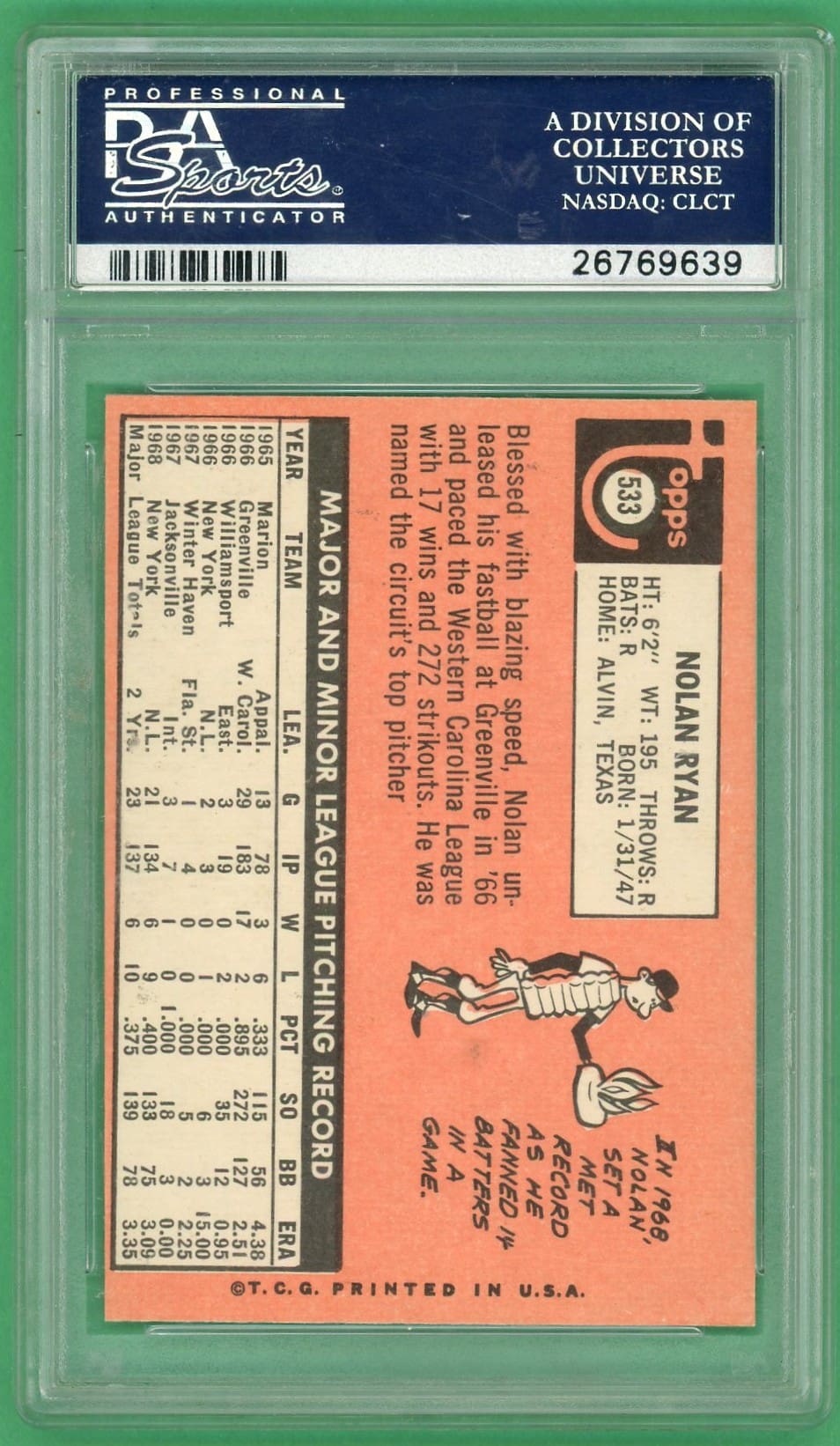 Nolan Ryan 1969 Topps Baseball Card #533 PSA 5