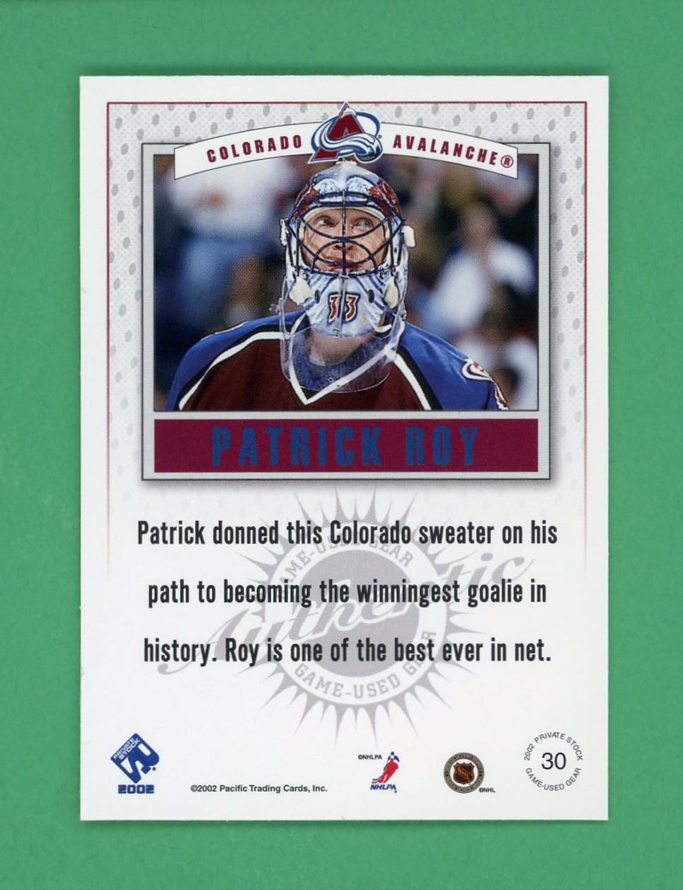 Patrick Roy 2002-03 Pacific Private Stock Jersey Card #30