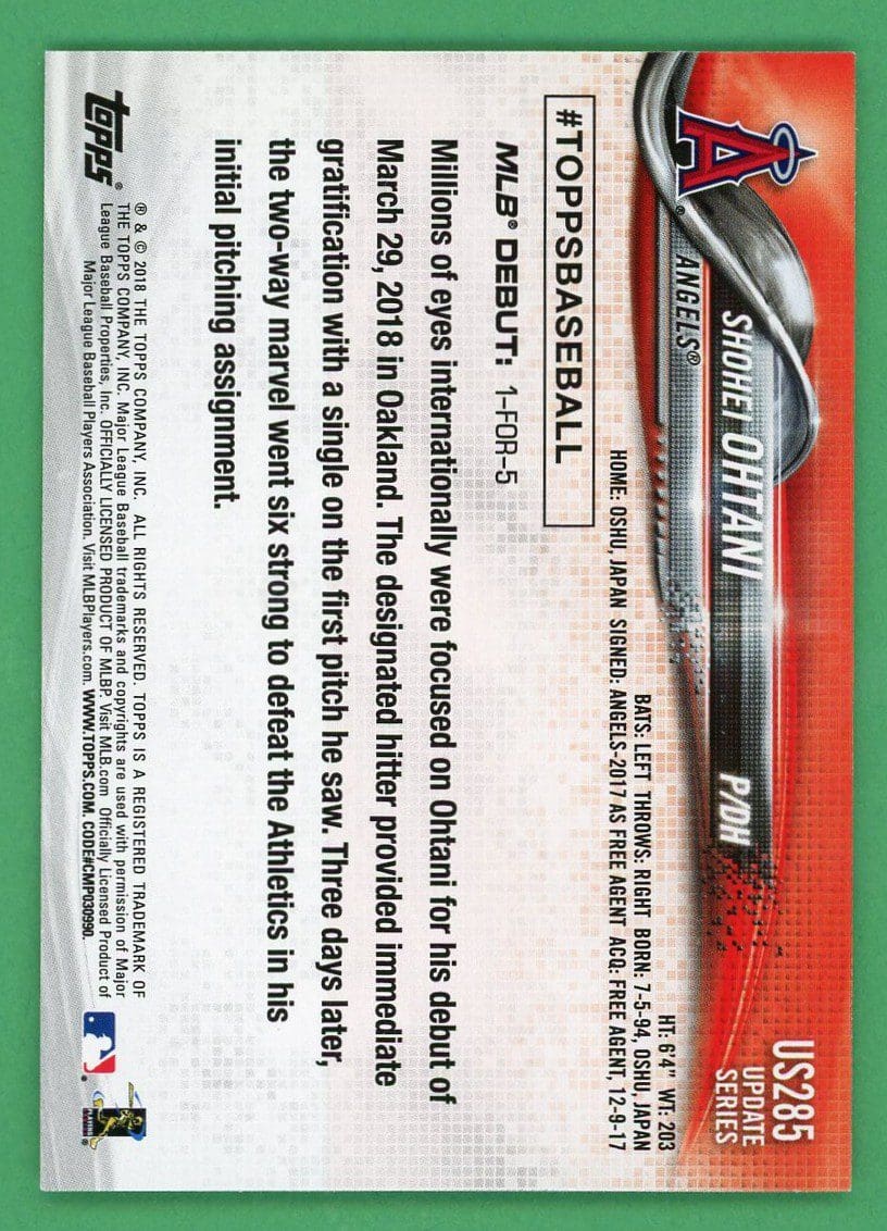 Shohei Ohtani 2018 Topps Update Rookie Debut #US285