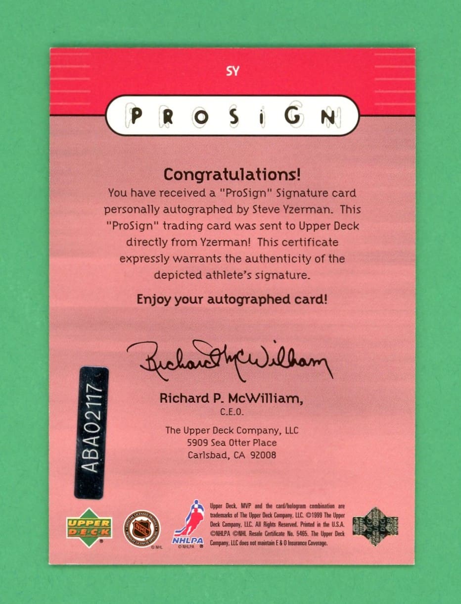 Steve Yzerman 1999-00 Upper Deck MVP Prosign Autograph #SY