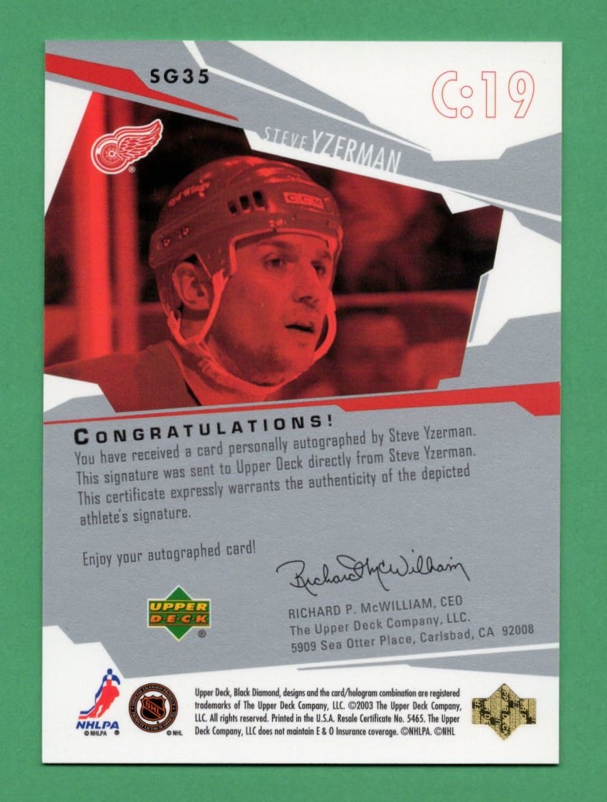 Steve Yzerman 2003-04 Upper Deck Black Diamond Signature Gems #SG35