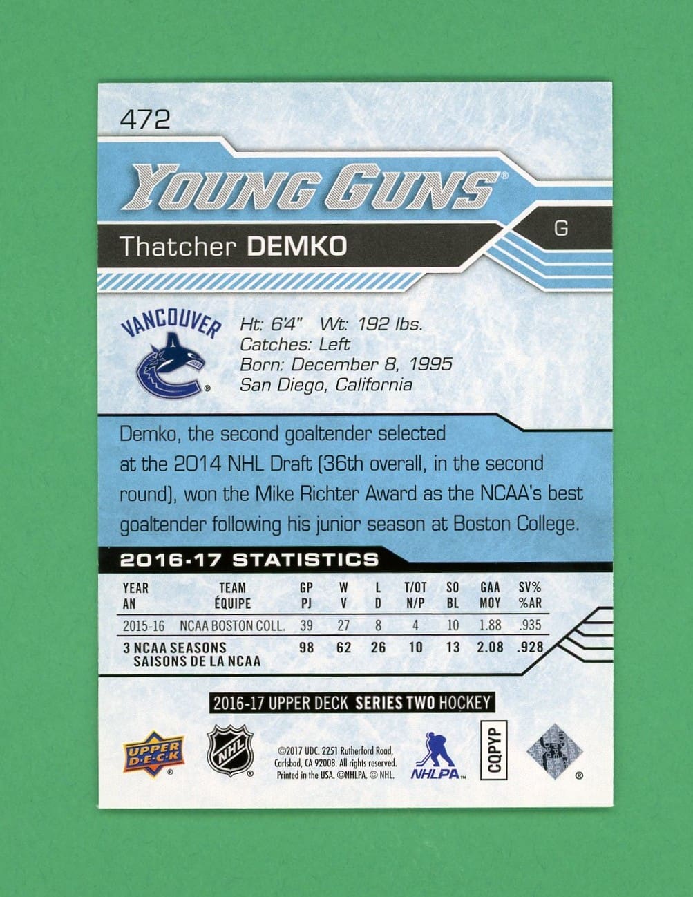 Thatcher Demko 2016-17 Upper Deck Series 2 Young Guns #472