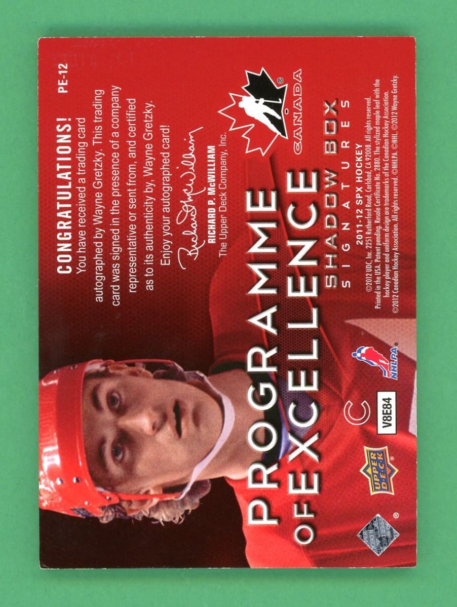 Wayne Gretzky 11-12 UD SPX Programme Of Excellence Shadow Box Signatures #PE-12