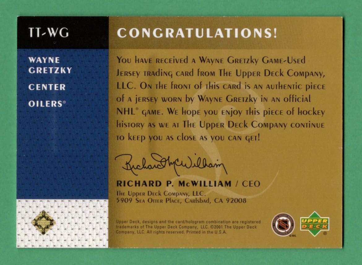 Wayne Gretzky 2001-02 Upper Deck NHL Legends Jersey Card #TT-WG
