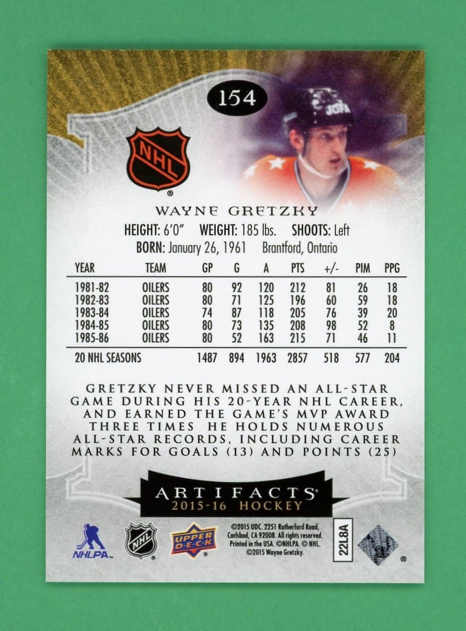 Wayne Gretzky 2015-16 Upper Deck Artifacts Spectrum Gold /25 #154